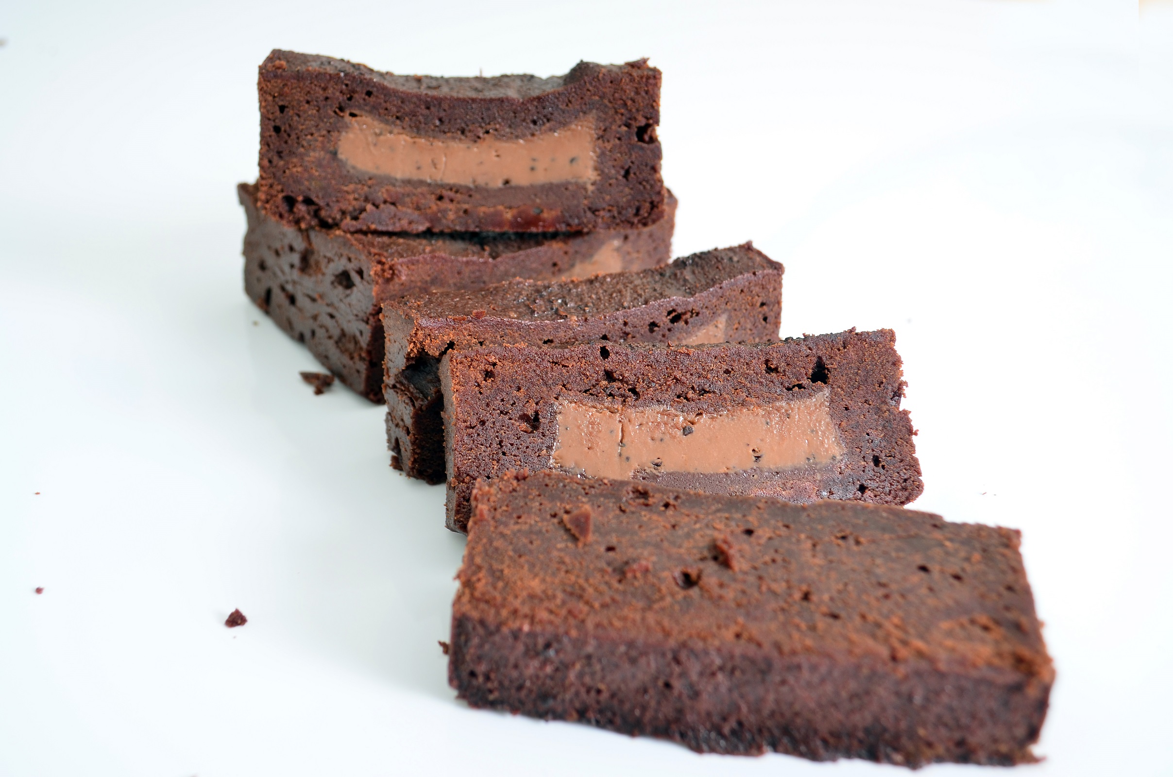 The pairing between dark chocolate brownie and coffee milk chocolate filling